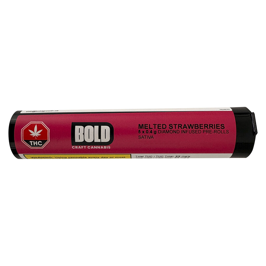 BOLD – Melted Strawberries Diamond Infused Pre-Rolls – 5×0.4g